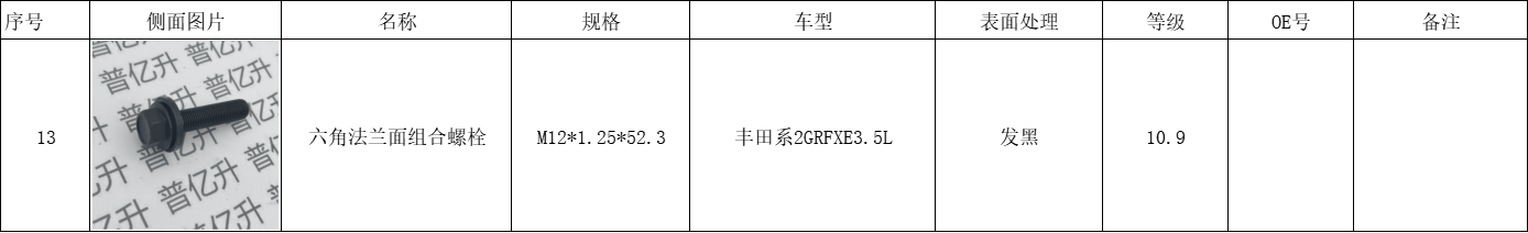 丰田系2GRFXE3.5L六角法兰面组合螺栓